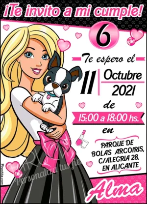 Invitación de cumpleaños Barbie con perrito