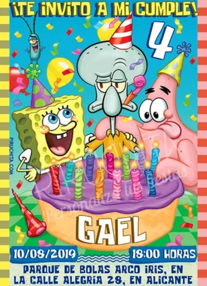 Invitación cumpleaños Bob Esponja #04 | Digital Imprimible