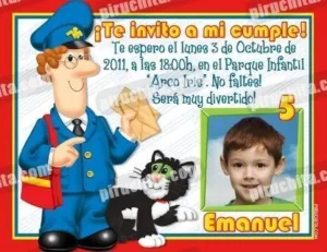 Invitación cumpleaños Pat el Cartero #03 con Foto | Digital Imprimible